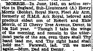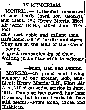 FOR HENRY MORRIS, Royal Navy Memorial One
