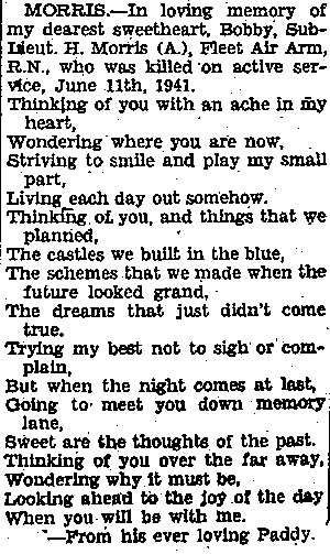 Pictured above Bobby and his fiancée, Paddy. She later married; she and her husband still keep in touch with Bobby's family