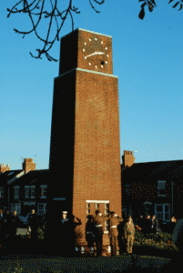 the afternoon, at the clock tower memorial in New Bradwell, Buckinghamshire