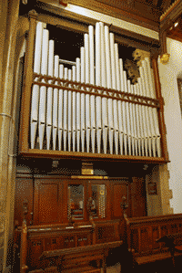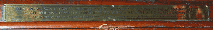 One of the plaques, above, reads, "This organ was cleaned, repaired, and re-arranged in