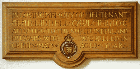 In loving memory of Alan Linnell Taylor RAOC, attached to the