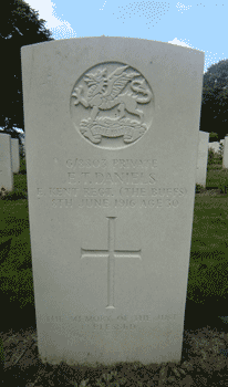 Aged 30, he was killed by a shell on 8 June 1916 and is buried