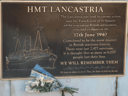 reads: "HMT Lancastria. The Lancastria was sunk by