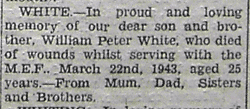 died on 25 April 1943, and he is commemorated on the Medjez-El-Bab Memorial, Tunisia. Panel 10.