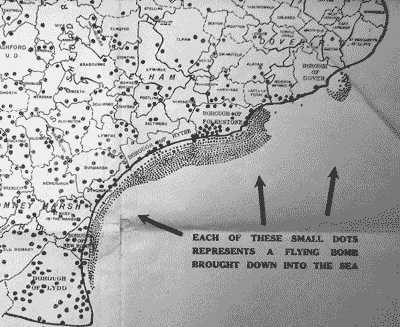 "Bomb Alley" - Map of Flying Bomb Landings from Kent Messenger 15th September