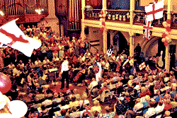 stiltwalkers just as starters - mince pies and wine, and Santa