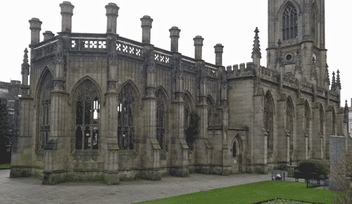 laid by a sign at St James' church: "In this place lie the bodies of many