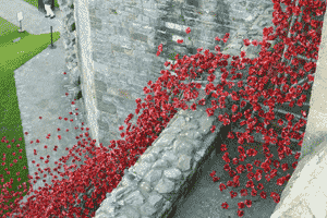 several thousand ceramic poppies, it is part of the display Blood Swept