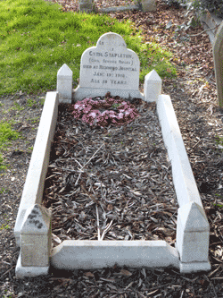 Bertie's parents. The kerbstones read, "In loving memory of John Umney,