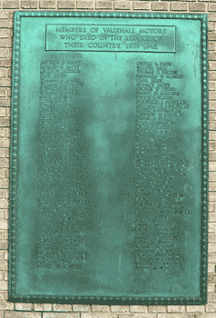 Vauxhall Motors memorial (left, detail right).